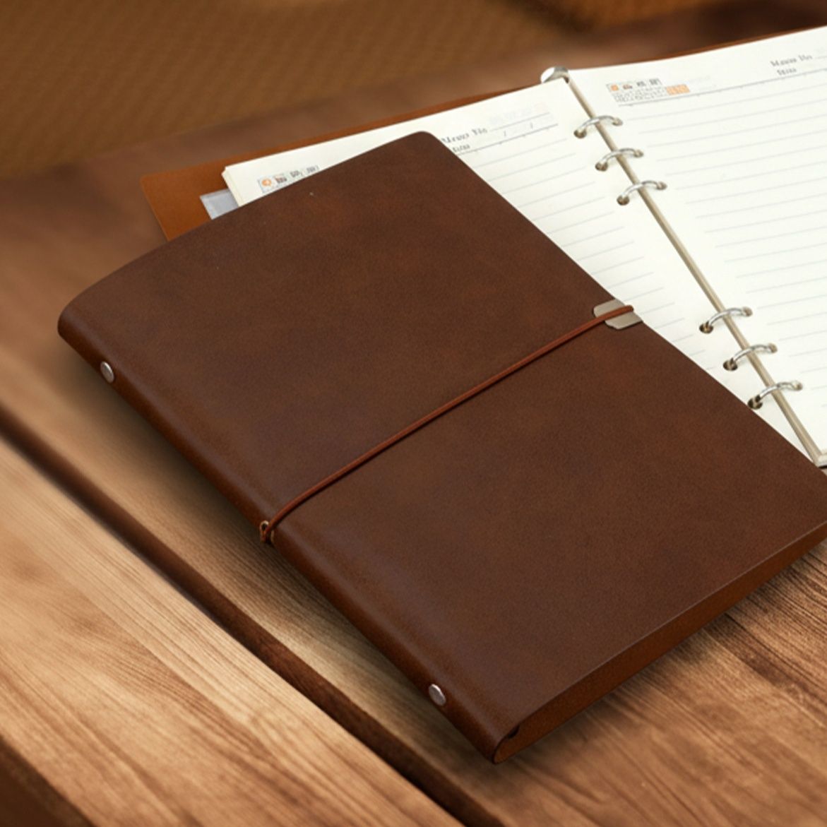 上質な革を使用した六穴リング式のブックカバーです。 手帳やノートとしても使える多機能タイプで、リフィルの交換が自由自在です。 ゴムバンド付きでしっかり閉じることができ、持ち運びにも便利な仕様となっています。 使い込むほどに味わい深く変化する革の質感をお楽しみいただけます。 ビジネスシーンからプライベートまで幅広くご活用いただける逸品です。