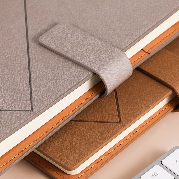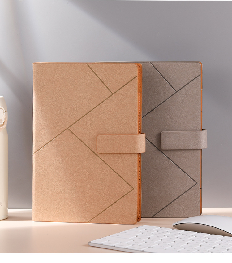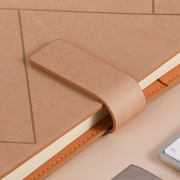 表面に斜めの幾何学模様が型押しされた上質な合成皮革製のブックカバーです。 留め具が付いているので大切な本をしっかりと保護することができます。 紙製とは異なる高級感のある質感で、読書時間を特別なひとときに演出します。 なめらかな手触りと洗練されたデザインが魅力的で、プレゼントにも最適な一品です。
