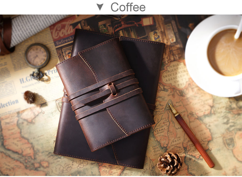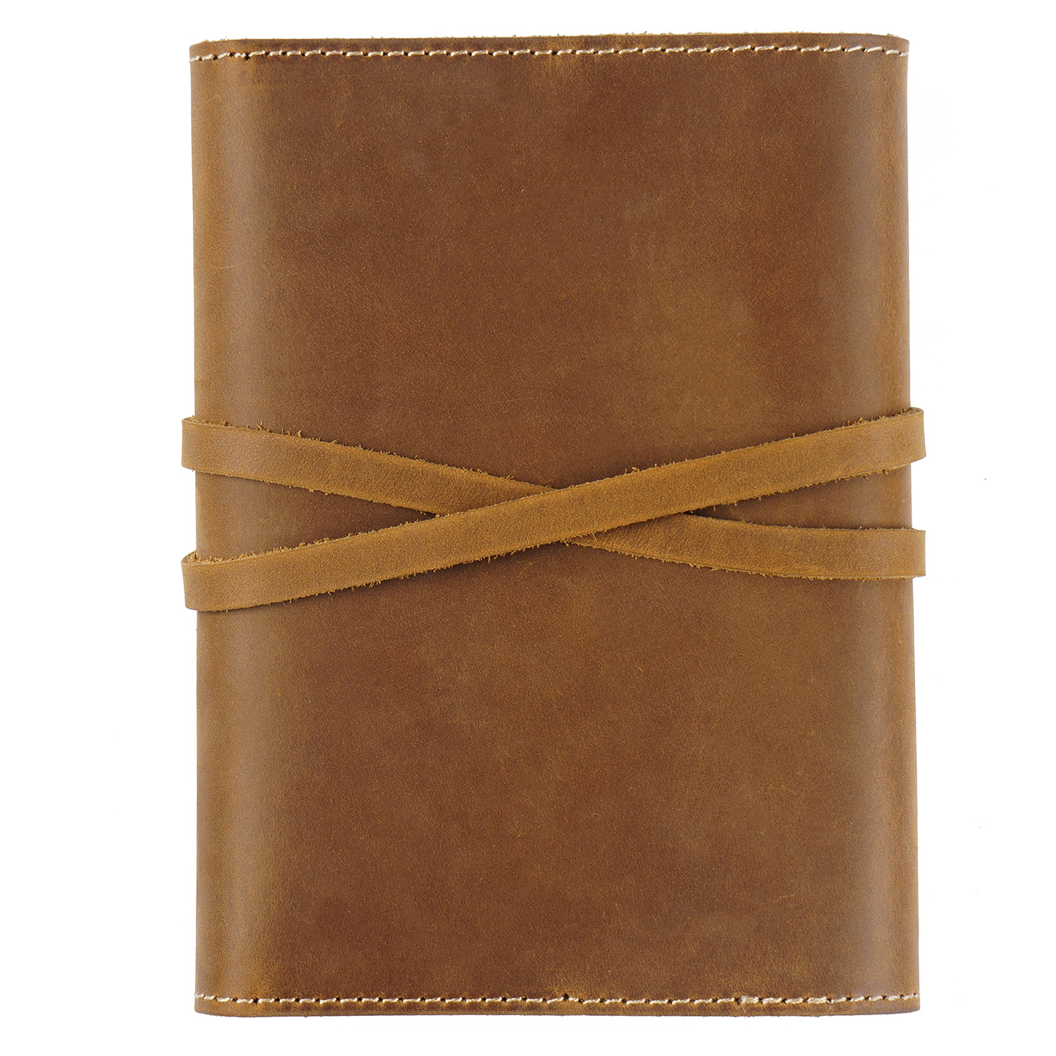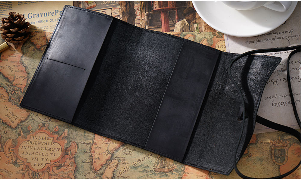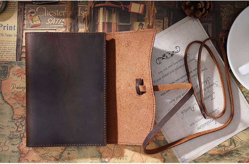 丁寧な手縫いステッチが施され、革紐で巻き留めるデザインが特徴的です。
