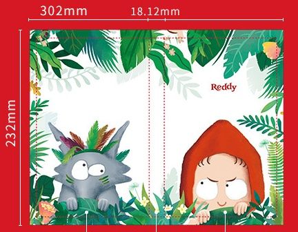 階段や柱のある建築空間を背景に、可愛らしいキャラクターが描かれたハードカバータイプのブックカバーです。 幾何学的なデザインと温かみのあるイラストが調和した、個性的な仕上がりになっています。 ゴムバンド付きで実用性も高く、日記や手帳としてお使いいただけます。 図案の印刷が美しく、持ち歩くたびに気分が上がる一冊です。