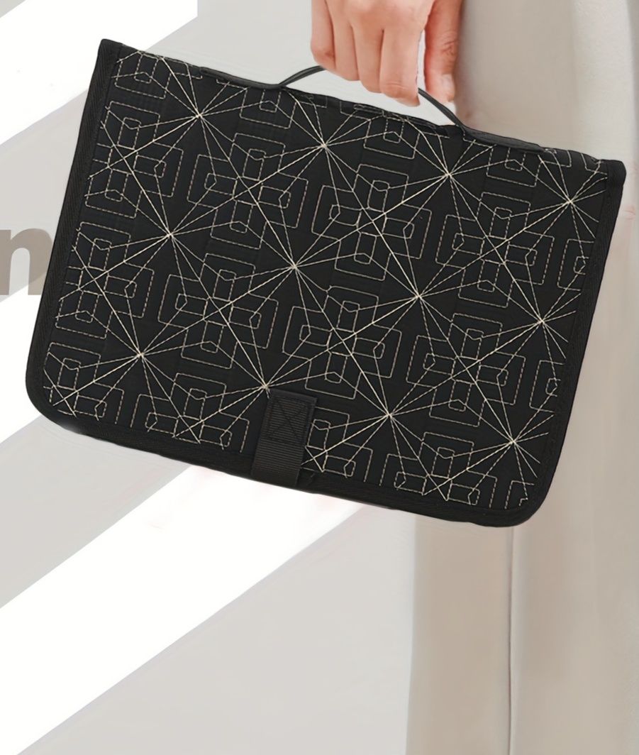 伝統的な麻の葉模様を現代風にアレンジした、上質なブックカバー用の布です。 繊細な刺繍糸で描かれた幾何学模様が、読書の時間を優雅に演出します。 丈夫な生地に施された立体的な刺繍は、手に取るたびに特別な質感を感じられます。 和の伝統美と現代的なデザインが融合した、こだわりのブックカバー素材として最適な布地です。