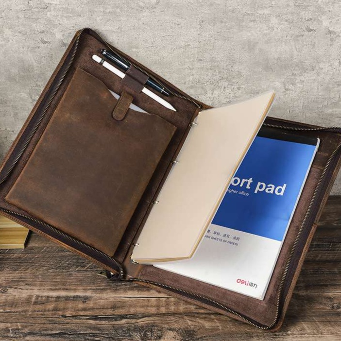 高級感あふれる革製のブックカバーは、ビジネスシーンに最適なアイテム。多機能なポケットや収納スペースを備え、ジッパー付きで書類やスマートフォンも安心して収納可能。耐久性に優れ、長く愛用できる実用的なデザインが魅力です。心地よい手触りと洗練された風合いが、あなたの読書体験を一層引き立てます。